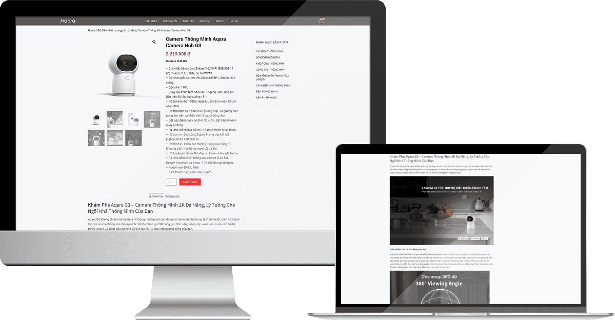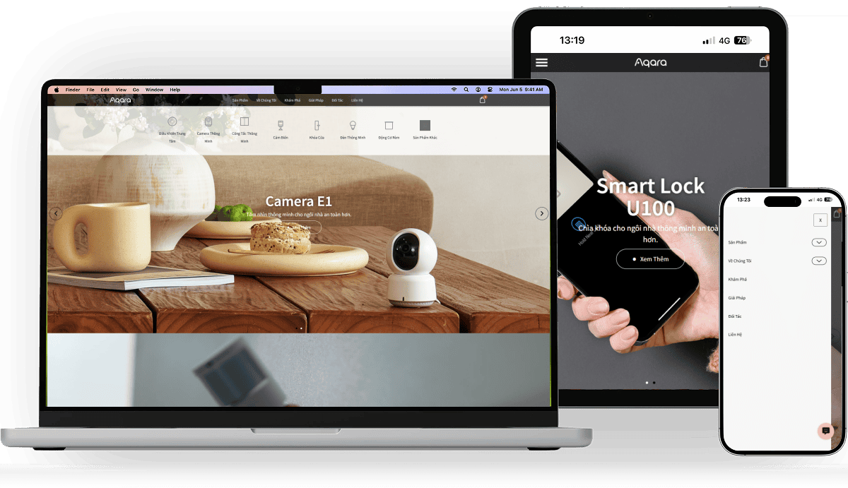 Song song đó, website Aqara được tối ưu theo tiêu chuẩn thiết kế web chuẩn SEO, giao diện tương thích trên mọi thiết bị và thân thiện với người dùng. Nhờ đó, khách hàng có thể dễ dàng tra cứu thông tin, so sánh sản phẩm và đặt hàng trực tuyến mọi lúc, mọi nơi.