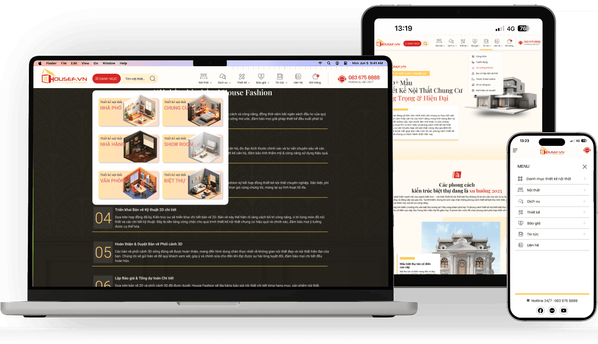 Housef là dự án thiết kế website trong lĩnh vực thiết kế và thi công nội thất cao cấp. Mục tiêu là xây dựng một nền tảng trực tuyến sang trọng – tinh tế – chuyên nghiệp, phản ánh đúng giá trị thẩm mỹ và sự uy tín mà thương hiệu muốn truyền tải. Website không chỉ trưng bày các dự án tiêu biểu, mà còn giúp khách hàng khám phá phong cách thiết kế, tìm hiểu dịch vụ và kết nối nhanh chóng với đội ngũ chuyên gia nội thất.