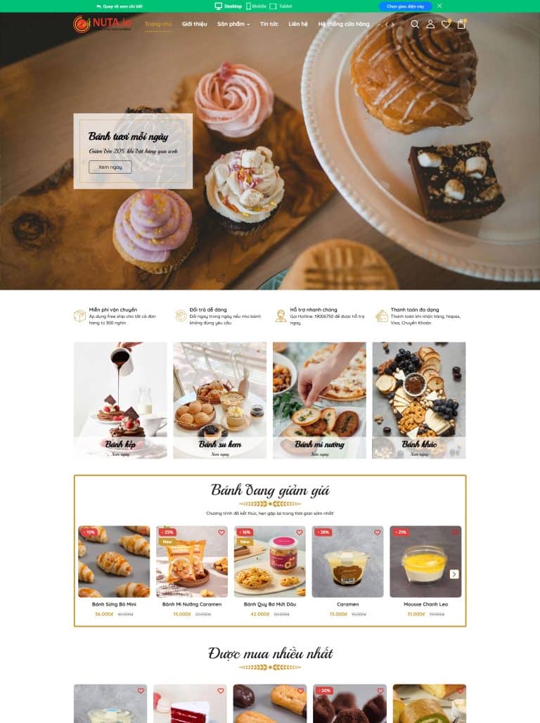 • Tích hợp các tính năng đã thống nhất (giỏ hàng, form liên hệ, blog…).