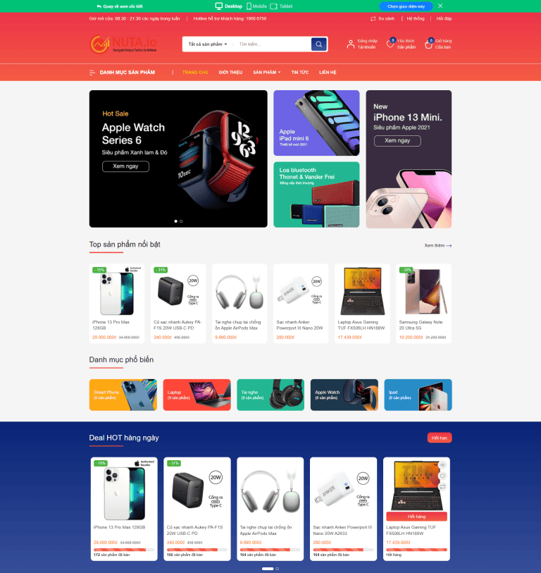 • Tích hợp các tính năng đã thống nhất (giỏ hàng, form liên hệ, blog…).